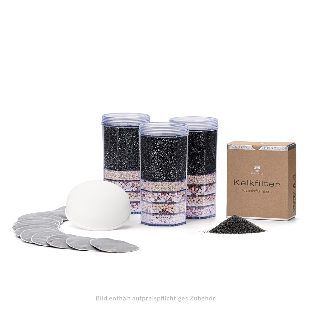 Hinweis: Bei extrem kalkhaltigem Wasser empfehlen wir Ihnen die Lotus FONTANA® ANTIKALK Mini Filterkartusche.