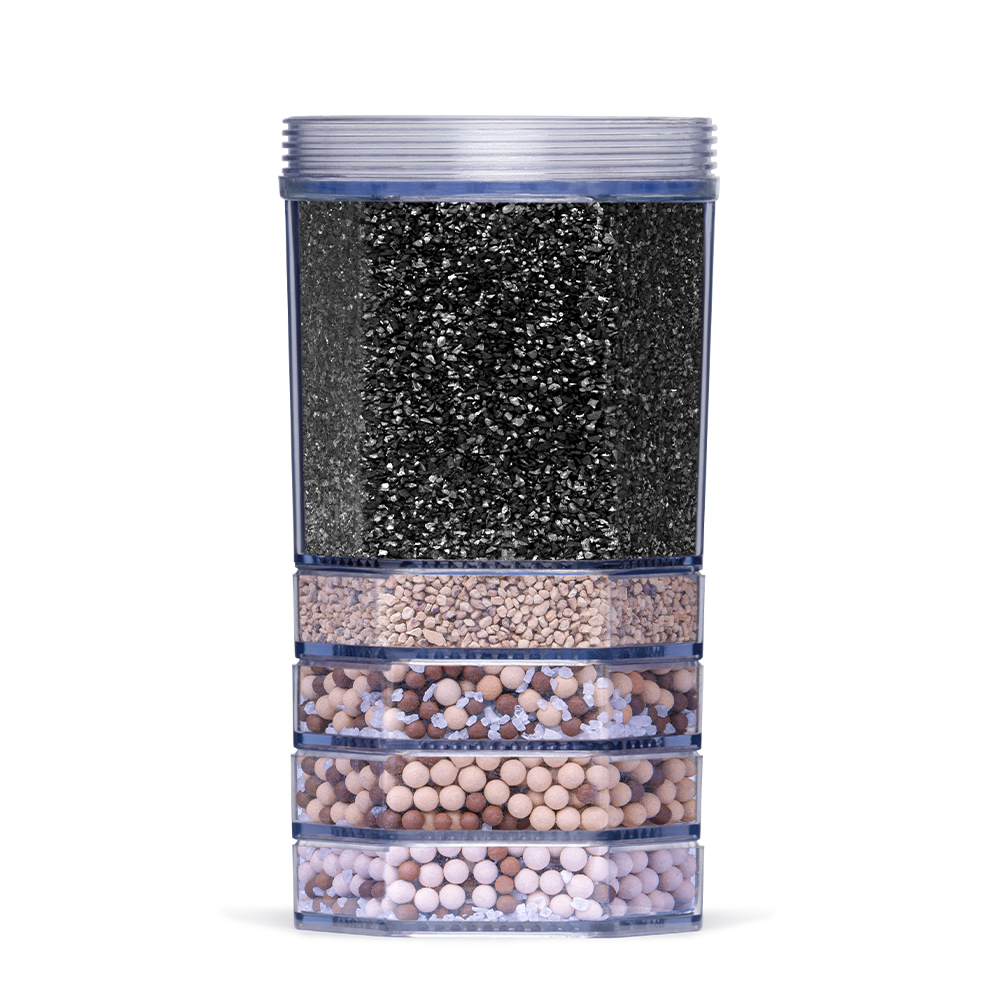 Unsere Schwerkraftfilter arbeiten bewusst ohne Druck: Das Wasser fließt langsam, gleichmäßig und durch mehrere sorgfältig aufeinander abgestimmte Filterschichten – ganz im Einklang mit natürlichen Prinzipien.